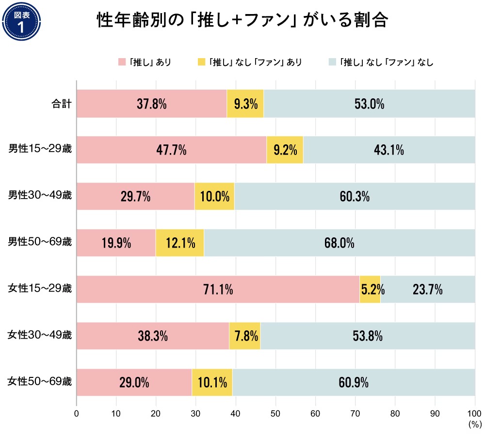 In this survey, we first asked respondents whether they had a "favorite." Those who answered no were then asked if they had any "fans or things they support." We provided a broad range of examples, including artists, idols, athletes or sports teams, comedians, celebrities, actors, YouTubers, influencers, VTubers, authors, video works, manga, and novels.