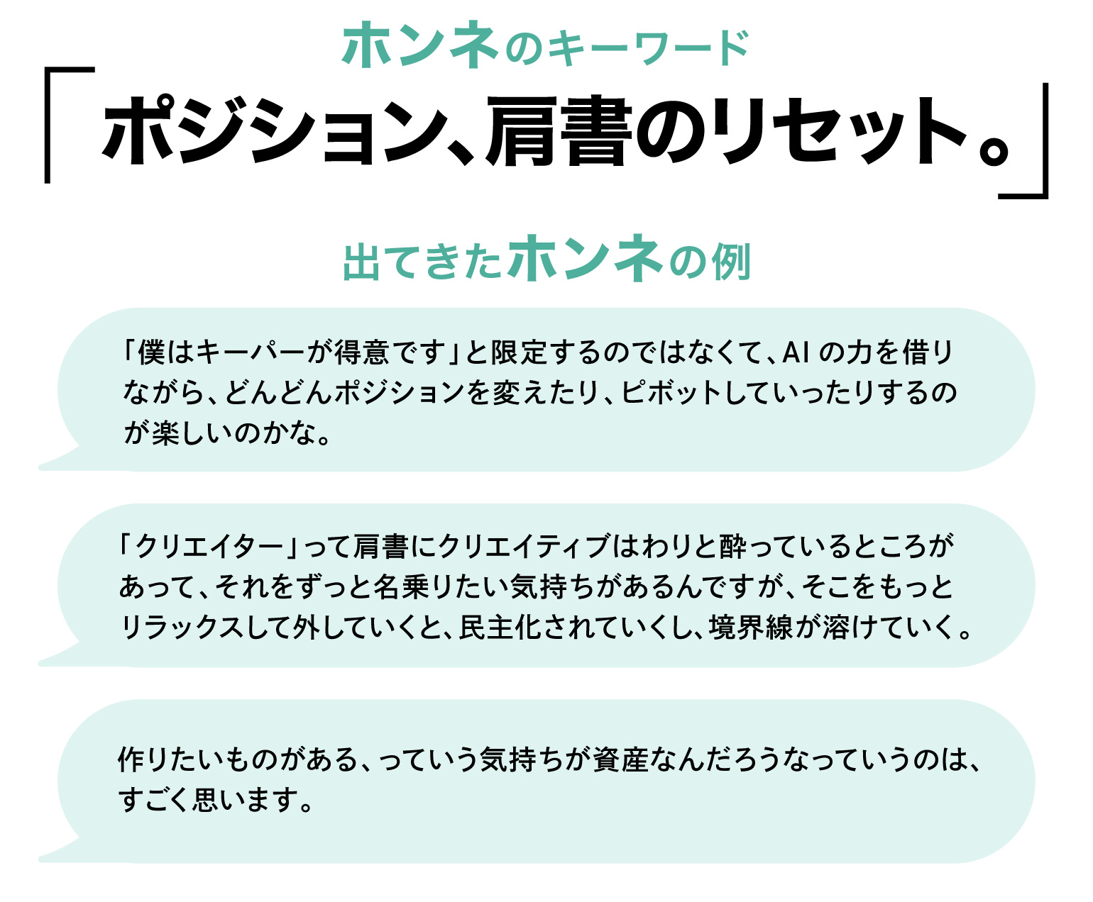 In terms of personal boundaries, I think a reset of job titles will happen. You'll clearly see "I can do this and that with generative AI, but not this." It means seeing your potential within a framework different from traditional job titles.